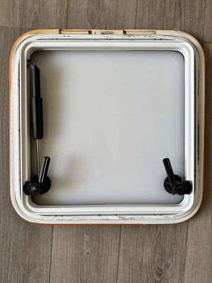 Bomar deck hatch off a 2001 Formula 382 Fastech. Includes screen and trim. Used condition. 17 1/8" hole size.