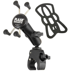 The RAM-B-400-UN7 consists of the Tough-Claw™ rail clamp base, STANDARD length double socket arm and universal spring loaded X-Grip® cradle for phones. The spring loaded X-Grip® cradle expands and contracts, allowing for a perfect custom fit of your tablet. Included are easy access grip knobs for quick insertion and release of your handheld device. The Tough-Claw™ rail clamp base is the perfect mounting base for quick and easy tool-less installation and removal on round, square, odd shaped rails and bars. The Tough-Claw™ can be clamped on rails from 0.625" - 1.5" outer diameter. Perfectly suited for mounting on the yoke of an aircraft, handlebars and seat posts of bicycles, kayak rails, roll bars and much more, the RAM® Tough-Claw™ will soon become another essential RAM® component in your collection of mounting options.